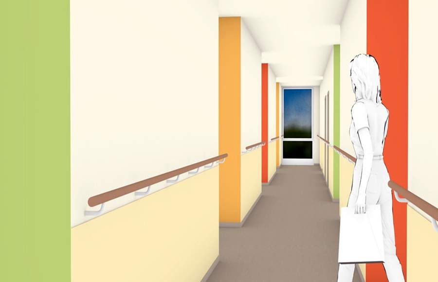 Orientierung und Sicherheit sind zwei Funktionen, die ein Treppenhaus zu erfüllen hat und sind damit Pflichtbestandteil jedes Gestaltungskonzepts. Die Farbgestaltung vermittelt differenzierte Raumerlebnisse, die die architektonische Gliederung unterstützen und dem Nutzer eine wertvolle Orientierungshilfe bieten.