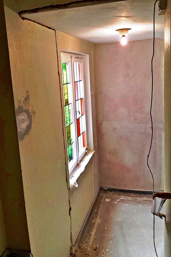 Hausflur konnte mit dem Auftrag neuer plastischer Stuktur auf den Wänden begonnen werden.