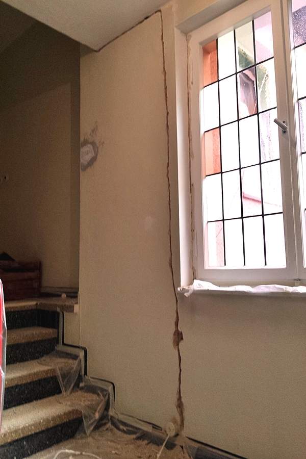 Natürlich wurden auch Holzbauteile wie Türen, Türrahmen und Fensterrahmen im Treppenhausflur einer