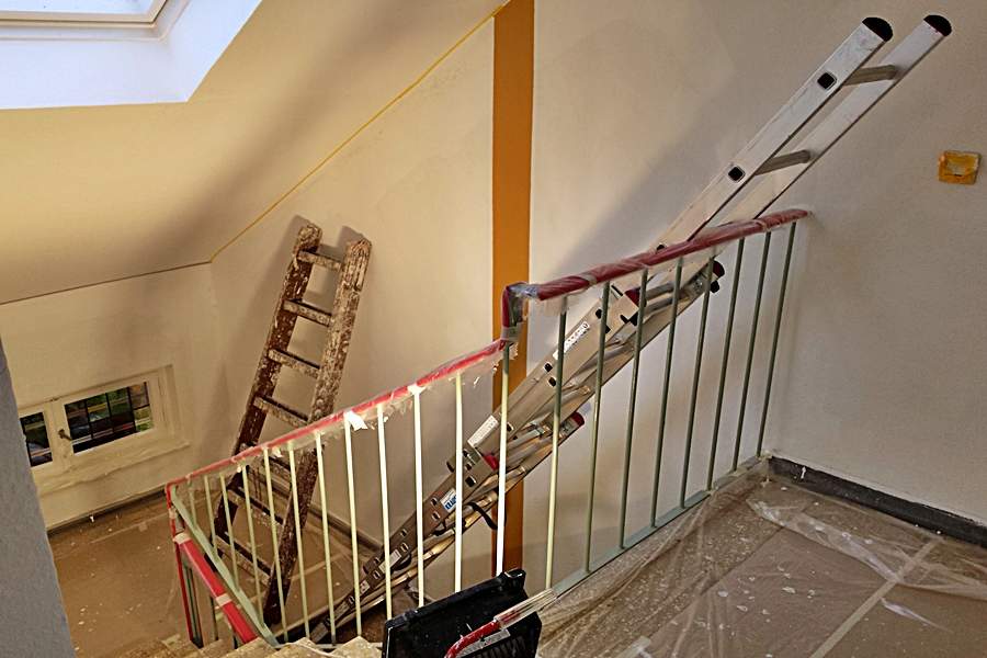 Im Treppenhaus war für die Schadenssanierung und die Umgestaltung tatsächlich einiges an Arbeit nötig.